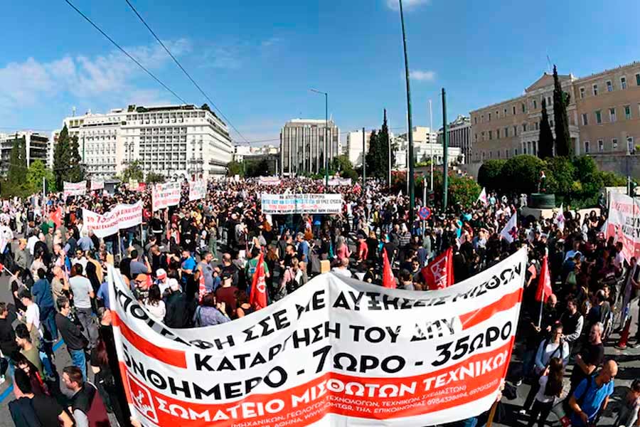 El 1 de octubre los principales sindicatos griegos convocaron una huelga general contra el proyecto de ley que además de plantear extender la jornada laboral a 13 horas diarias, incluye una distribución “flexible” de los días de vacaciones,